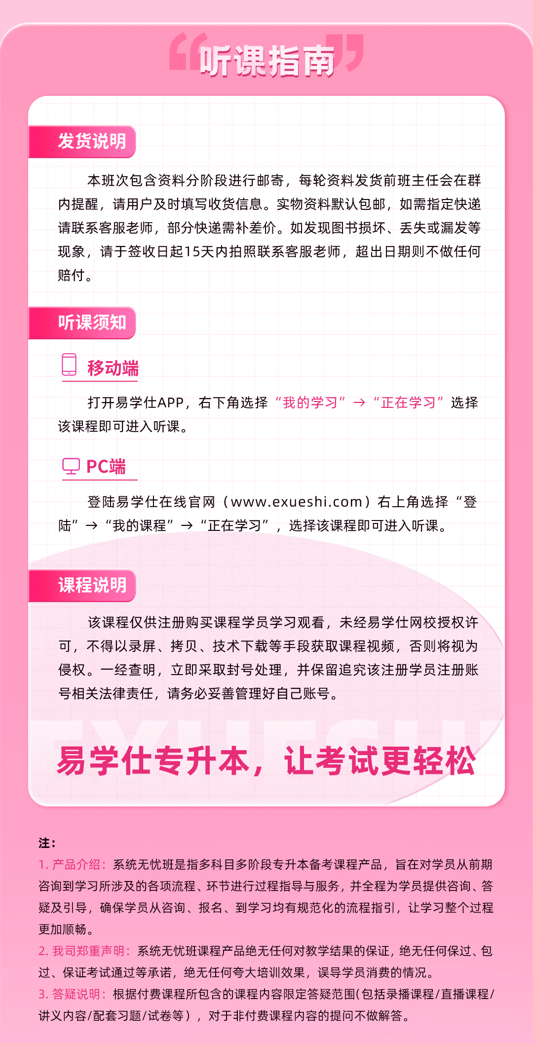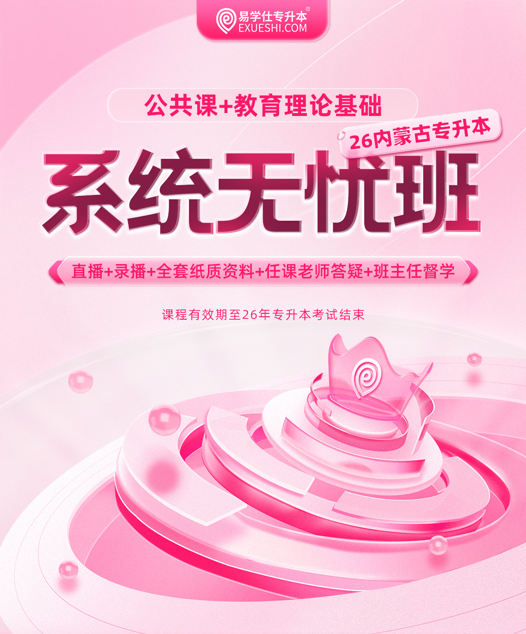 专升本网课平台【易学仕在线】为广大专升本考生精心打造2026内蒙古专升本系统无忧班【公共课+教育理论基础】,祝您考试顺利!