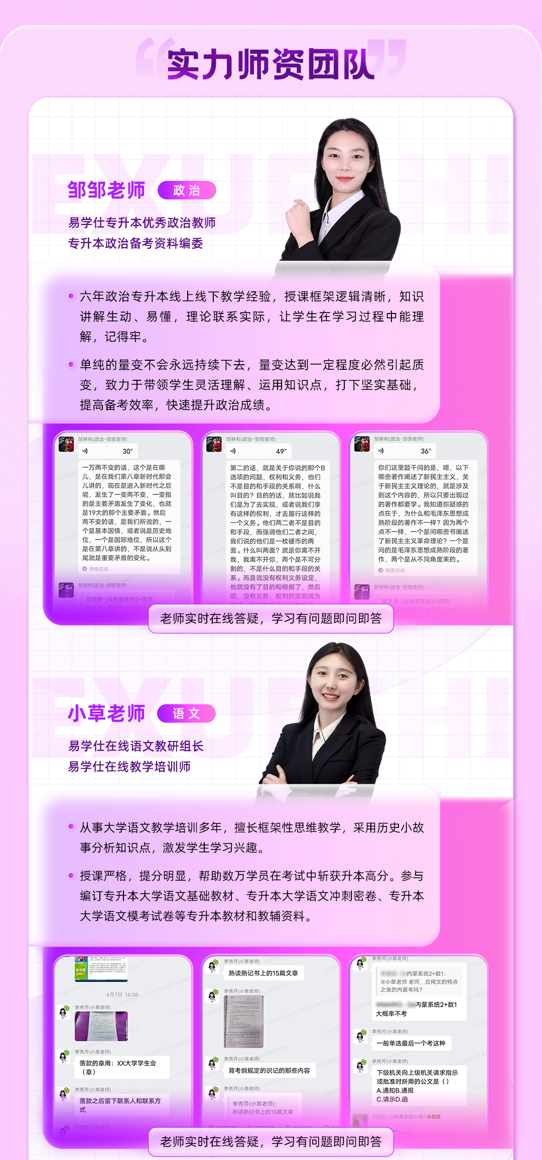 易学仕在线语文高级教师 对全国多地专升本考情把握精准 语文专升本教学经验丰富 擅长深入浅出解读知识点,以点带面构建思维框架 授课风格亲切自然,帮助学员顺利升本是教学中最大的快乐