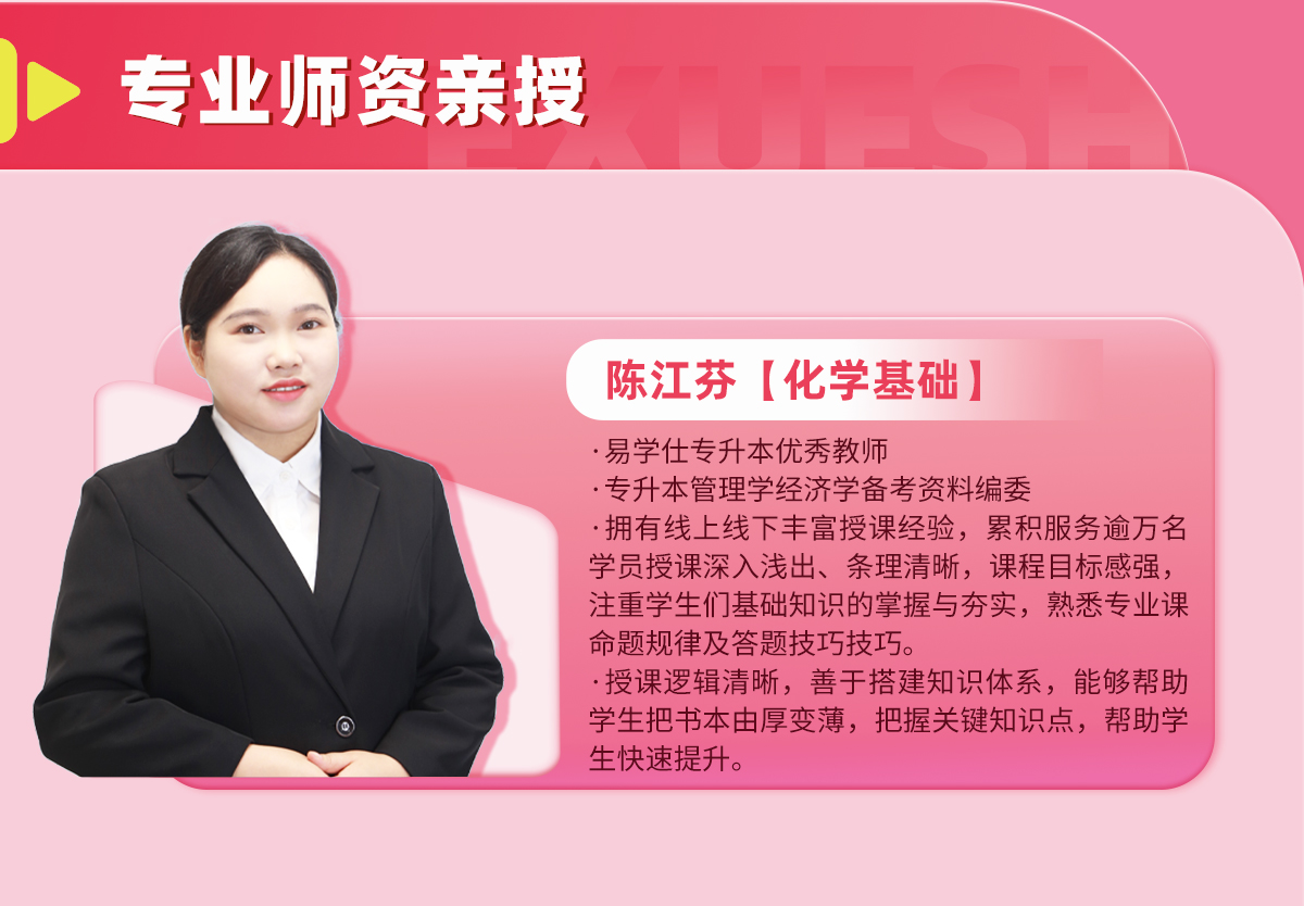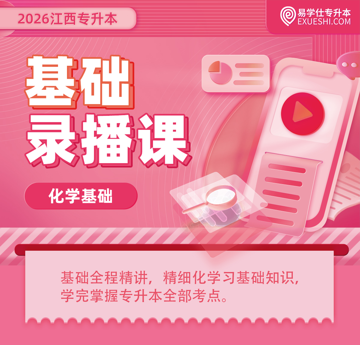 专升本网课平台【易学仕在线】为广大专升本考生精心打造2025江西专升本基础录播课【化学基础】,祝您考试顺利!