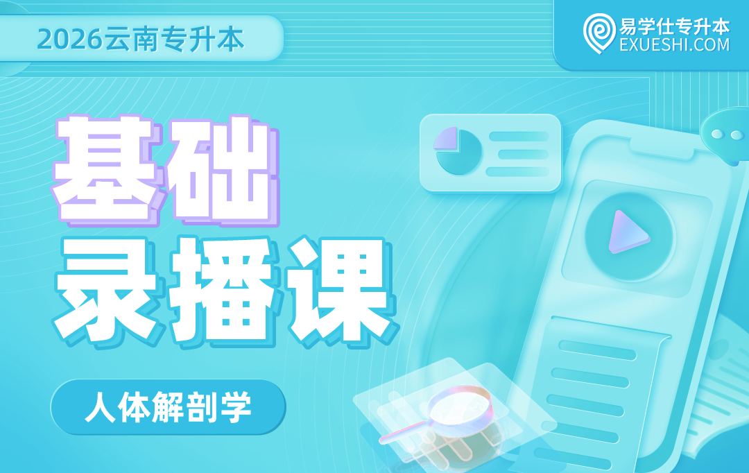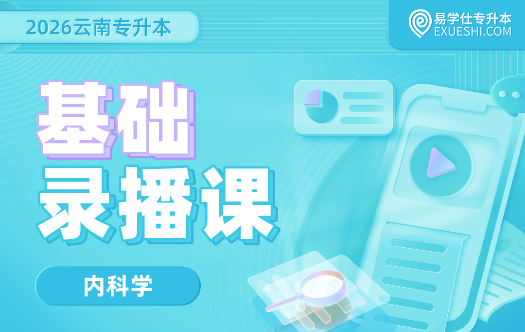 专升本网课平台【易学仕在线】为广大专升本考生精心打造2026云南专升本基础录播课(医学综合),祝您考试顺利!