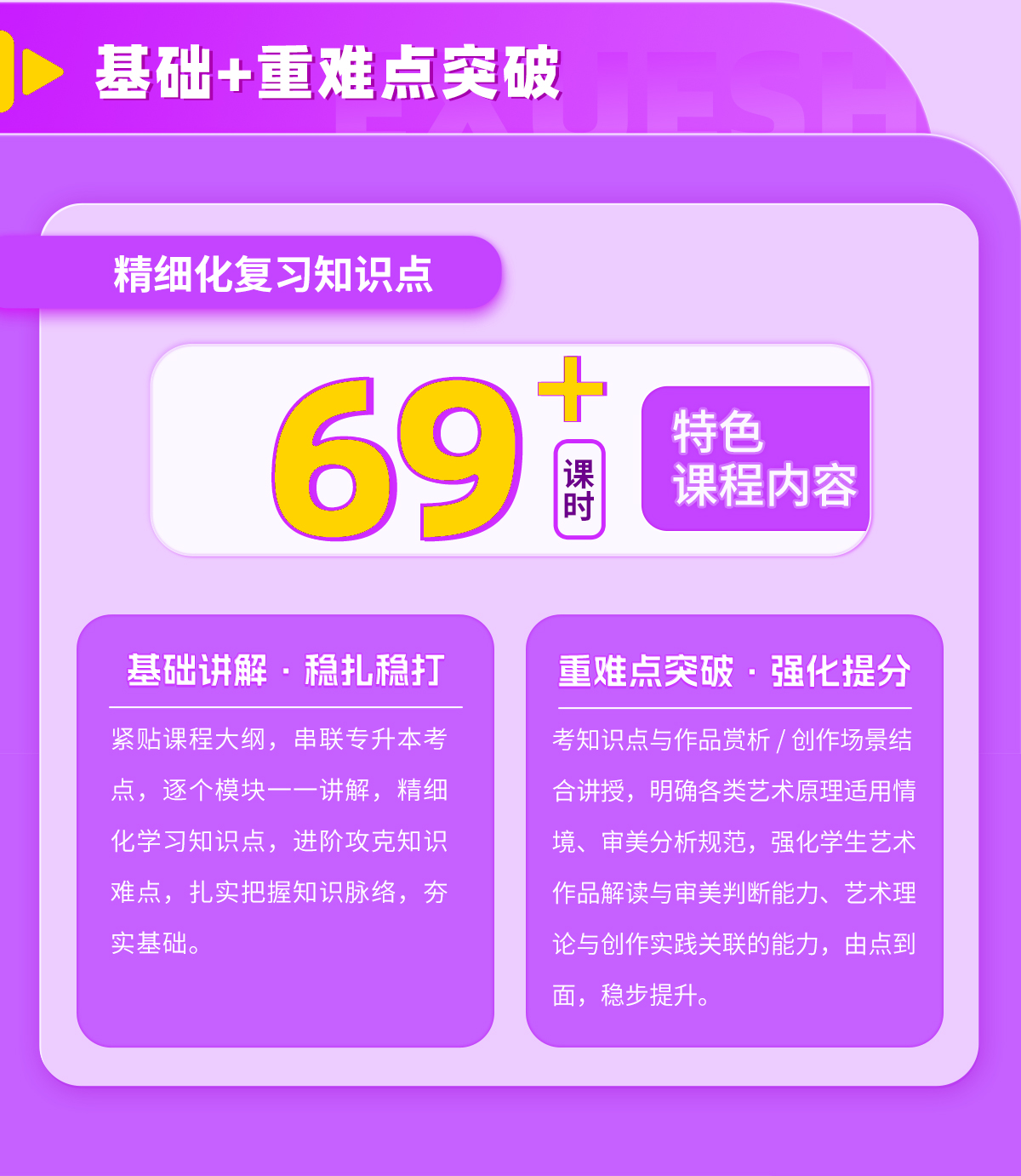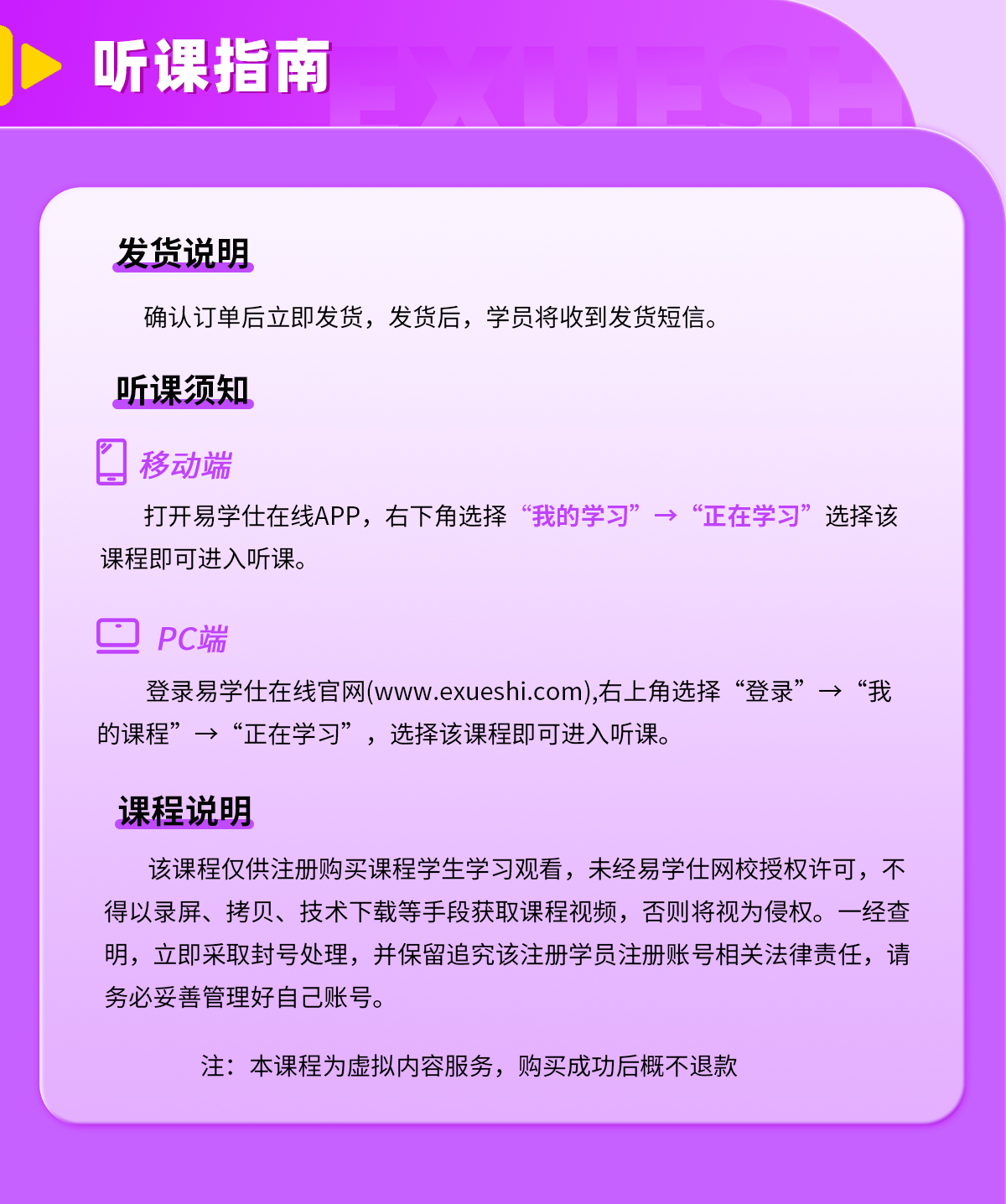 易学仕教育艺术概论教师 艺术学硕士 拥有多年艺术概论线上、线下教学经验,熟悉多个版本艺术概论教材,多次参与编写艺术概论各类讲义及试卷。 授课逻辑清晰、深入浅出,让学生快速掌握章节知识要点、搭建知识框架,擅长分析题目,助力学生提升各类题型答题技巧。