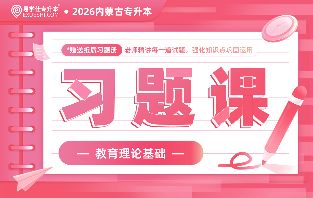 专升本网课平台【易学仕在线】为广大专升本考生精心打造2026内蒙古专升本习题课【教育理论基础】,祝您考试顺利!