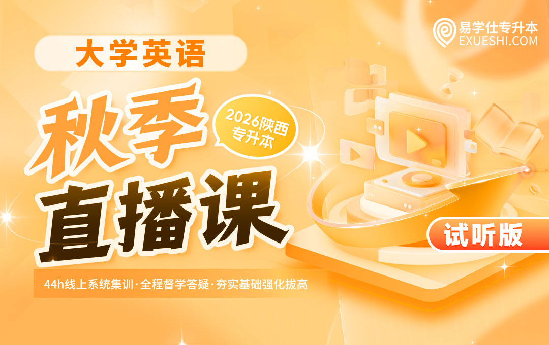 专升本网课平台【易学仕在线】为广大专升本考生精心打造2026陕西专升本秋季直播课(大学英语),祝您考试顺利!
