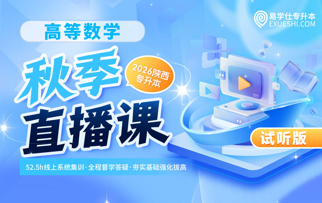 专升本网课平台【易学仕在线】为广大专升本考生精心打造2026陕西专升本秋季直播课(高等数学),祝您考试顺利!