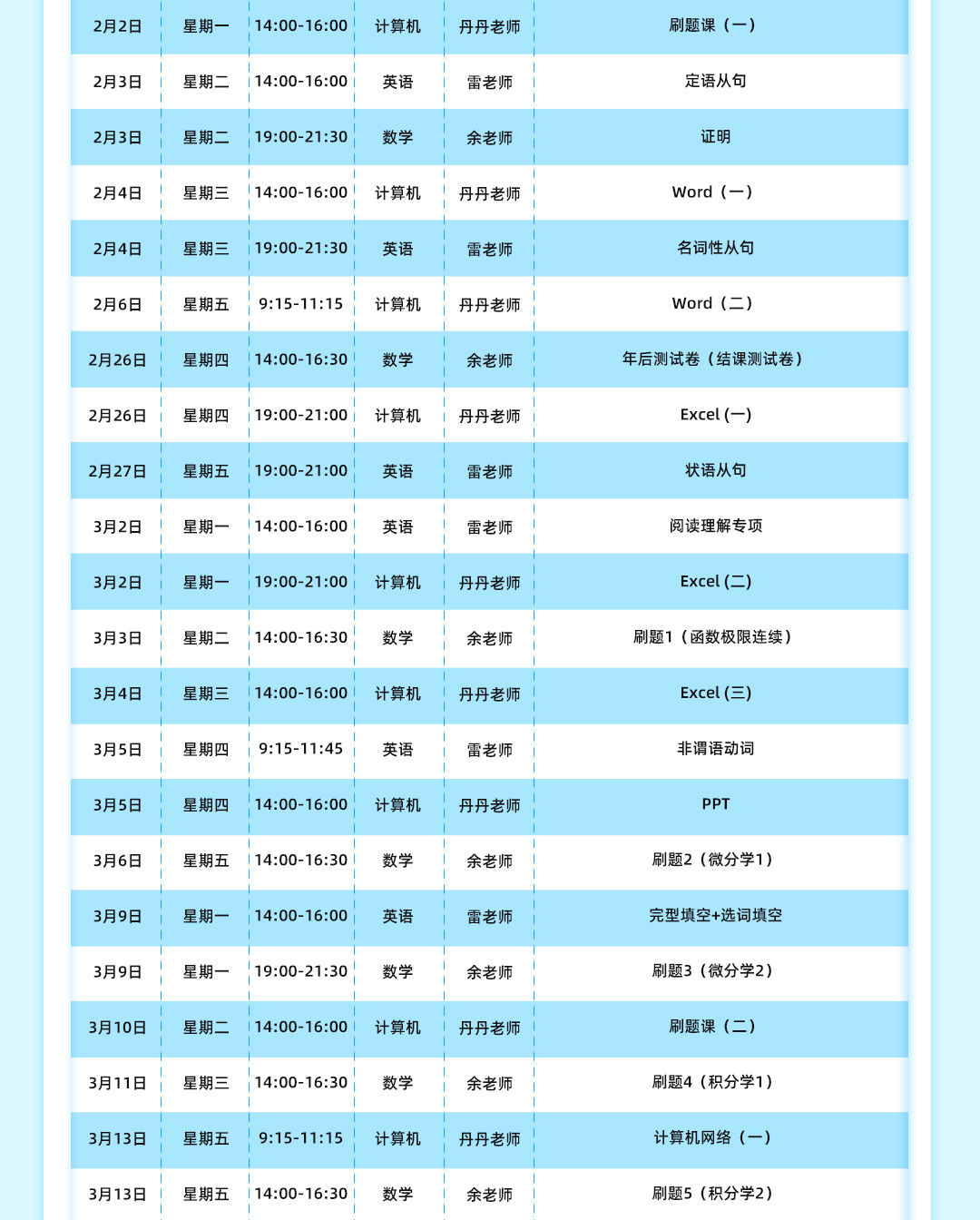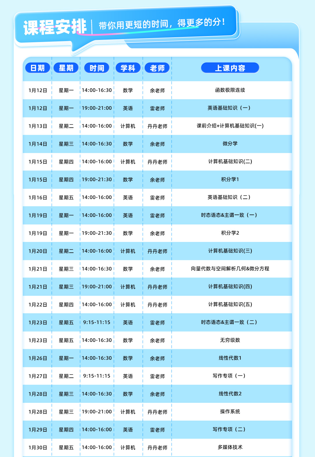 易学仕在线数学优秀教师 好老师教育集团优秀教师 曾任好老师线下分校数学教学校长 从事专升本数学教学工作8年以上 专注于专升本《高等数学》考试内容及考试方向的研究,能够精准把握考点,助力学子成才。善于采用多样化教学手段,让学生深刻透彻理解知识点,教学中能根据学生特点因材施教,注重引导学生思考,培养学生逻辑思维能力。