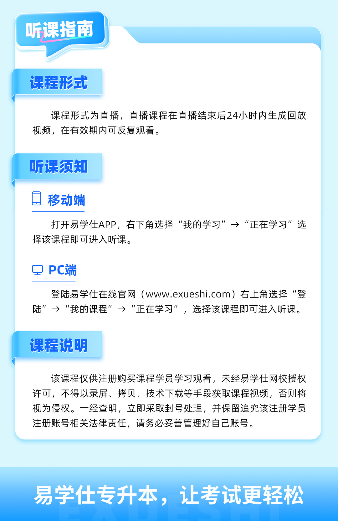 易学仕在线专升本英语教师,趣味单词课主讲教师,专升本英语备考资料编委。 负责备考资料书、模拟试卷、考前讲义、考前密卷、阶段测试等系列资料的编辑。主要负责湖北、山西、湖南、宁夏等省份。 持有英语教师资格证书、英语专业八级证书、普通话二级甲等证书,曾获得“全国大学生英语词汇大赛”三等奖。用扎实的专业知识,传授给学生正确的专业知识;熟悉多省专升本英语考试要求及考点,根据不同省份设计不同教材及课程。 秉持热爱学生、尊重学生、了解学生、公平公正对待学生、严格要求学生的理念,和学生一起学习、共同进步!